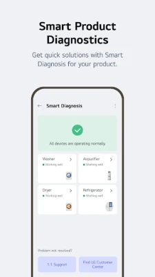 Fuatilia matumizi yako ya nishati kwa urahisi na ufanisi. Kazi ya 'Ufuatiliaji wa Nishati' inakuwezesha kulinganisha matumizi yako ya umeme na majirani zako, kukuwezesha kuweka malengo ya kuokoa nishati na kupokea arifa za hali ya matumizi. Pata huduma kamili za utunzaji wa bidhaa zako zote katika sehemu moja. Kutoka kwenye programu, unaweza kushughulikia kila kitu kuanzia utatuzi wa matatizo hadi maombi ya huduma. Tumia kazi ya 'Smart Diagnosis' kuangalia hali ya bidhaa yako, au panga ziara ya fundi mtaalamu kwa uchunguzi na ukaguzi sahihi. Kwa maswali kuhusu vifaa vya nyumbani vya LG ThinQ, 'Piga Gumzo na LG' inatoa majibu yanayolingana na hali na utendaji wa bidhaa yako, ikitumia akili bandia kukupa usaidizi wa haraka na sahihi.