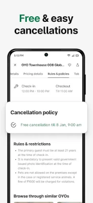 Kupanga safari yako ijayo ni rahisi na OYO. Programu yetu inafanya mchakato wa kuweka nafasi kuwa rahisi, ikikupa chaguzi nyingi za malipo ikiwemo kadi za debit/credit, benki za mtandaoni, UPI, Google Pay, PhonePe, PayTm, na uwezo wa kulipa unapofika hotelini. Ili kuongeza thamani ya safari zako, jiunge na OYO Wizard Membership na ufurahie mapunguzo maalum, ofa za kila siku, na OYO money. Tumejitolea kuhakikisha faraja yako kuanzia unapoingia hadi utakapoondoka, tukisikiliza mahitaji yako kila wakati. Ikilinganishwa na majukwaa mengine, OYO inang'aa kwa bei zake shindani, huduma bora kwa wateja, na mtandao mpana unaohakikisha unapata mahali pazuri pa kukaa popote unapoenda.